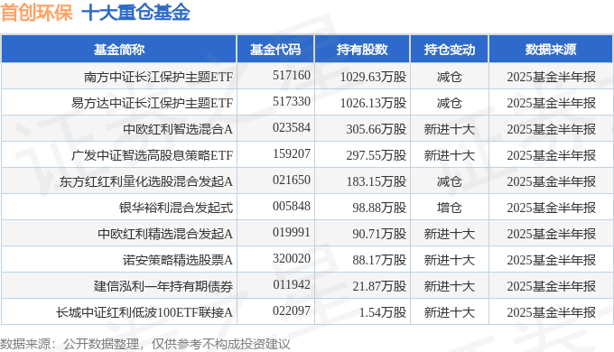 持有首创环保最多的基金为南方中证长江保护主题ETF,目前规模为13.74亿元,最新净值0.8734(8月29日),较上一交易日上涨0.73%,近一年上涨47.56%。该基金现任基金经理为龚涛。